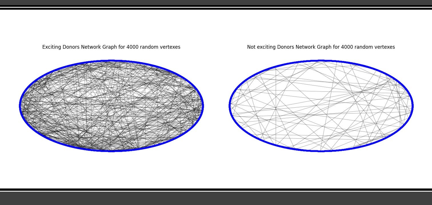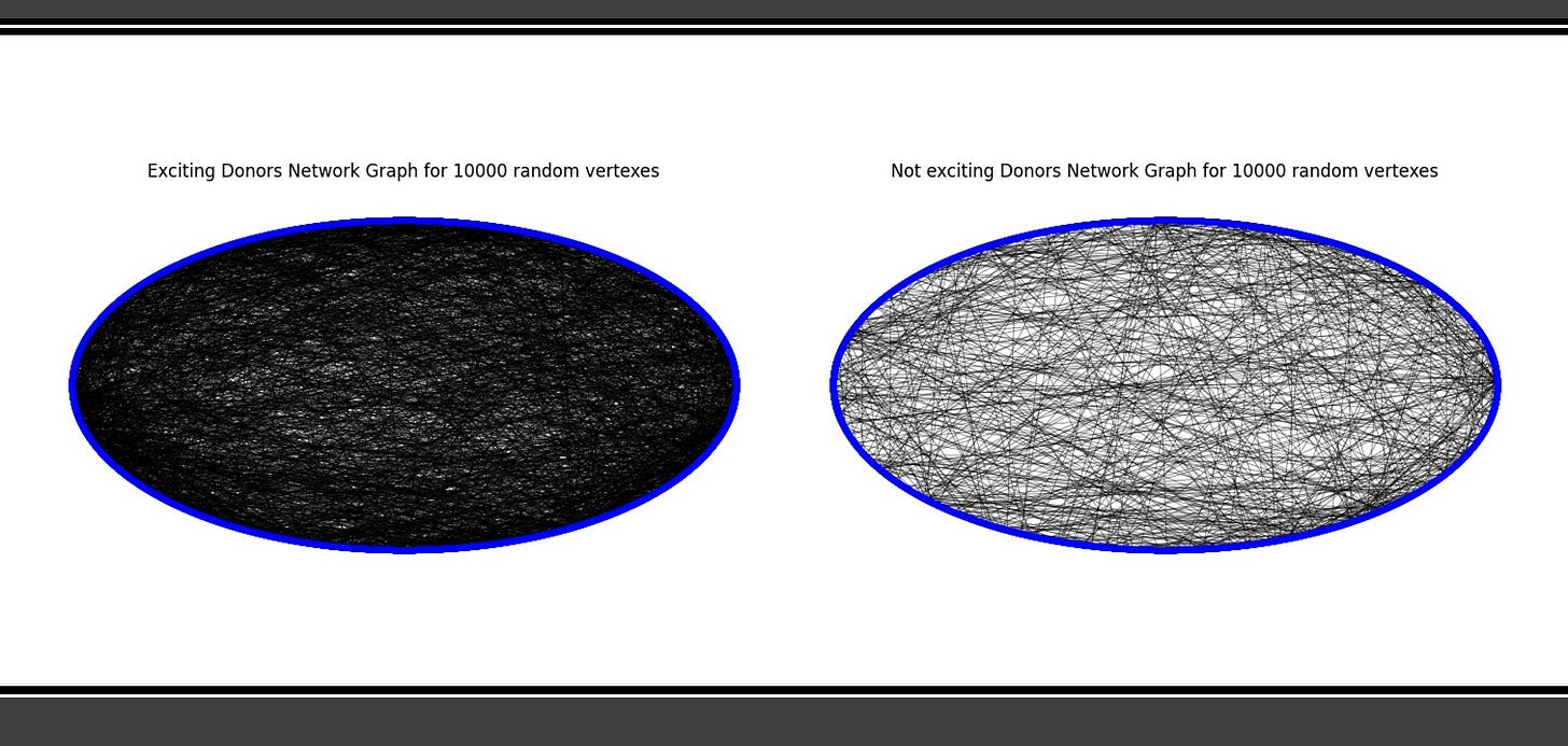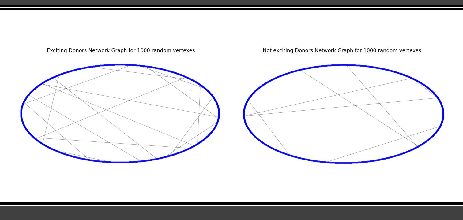 Is noticeable that with the same sampling size, donors for exciting projects are more connected than the same sampling of its counterpart.