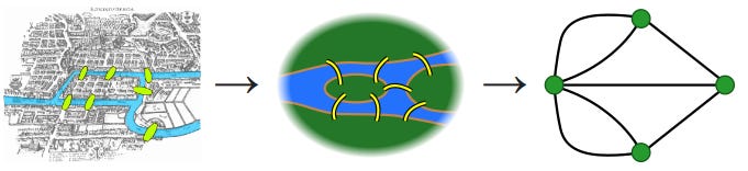 Euler’s method was to replace each land mass by vertices and the bridges as the edges connecting them: