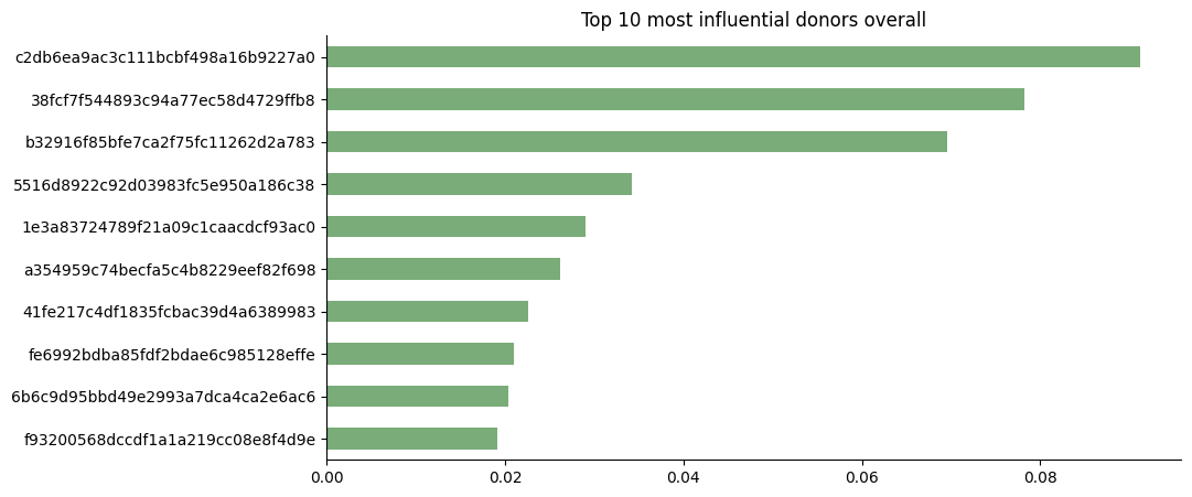 And we see higher jumps in influence between consecutive ranks (1st to 2nd, 2nd to 3rd…) with a top 2 of influential donors, and the rest having similar centrality or influence between each-other.